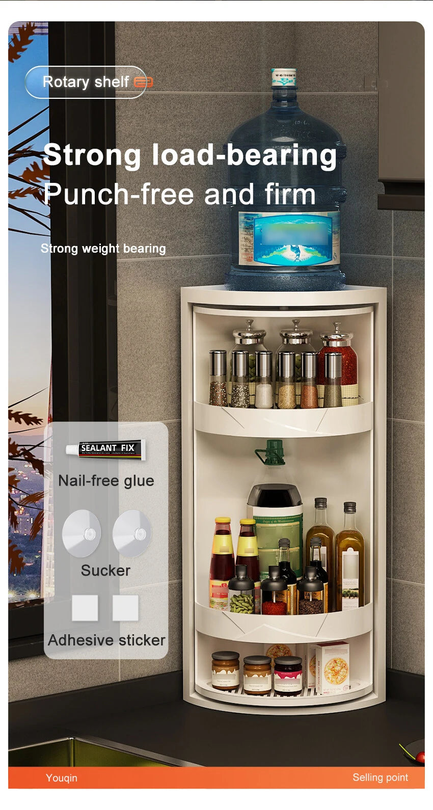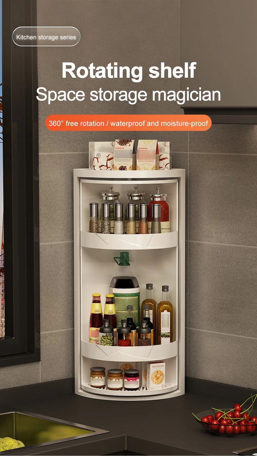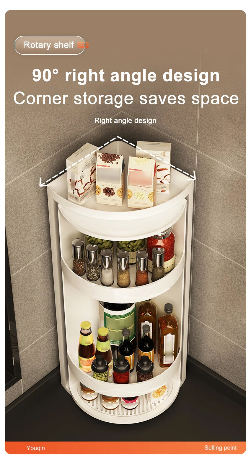 Kitchen Rotatable Layered Adjustable Shelf Bottle Holder Condiment Organizer Spice Jars, Can Rotating Storage Rack, Corner Shelf