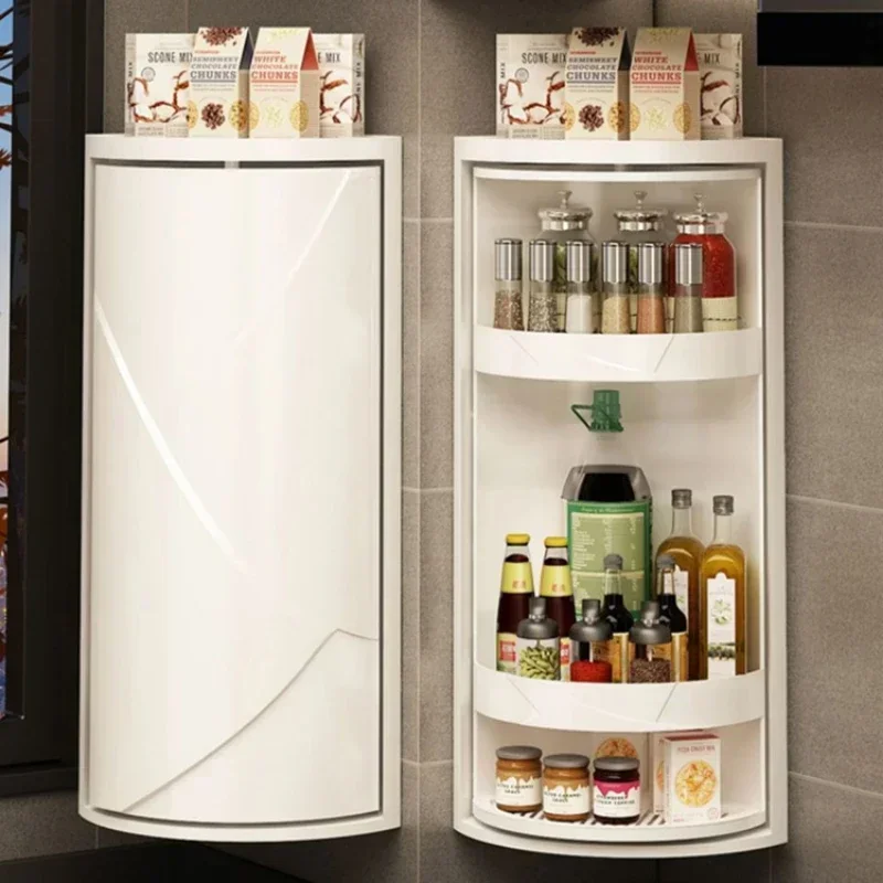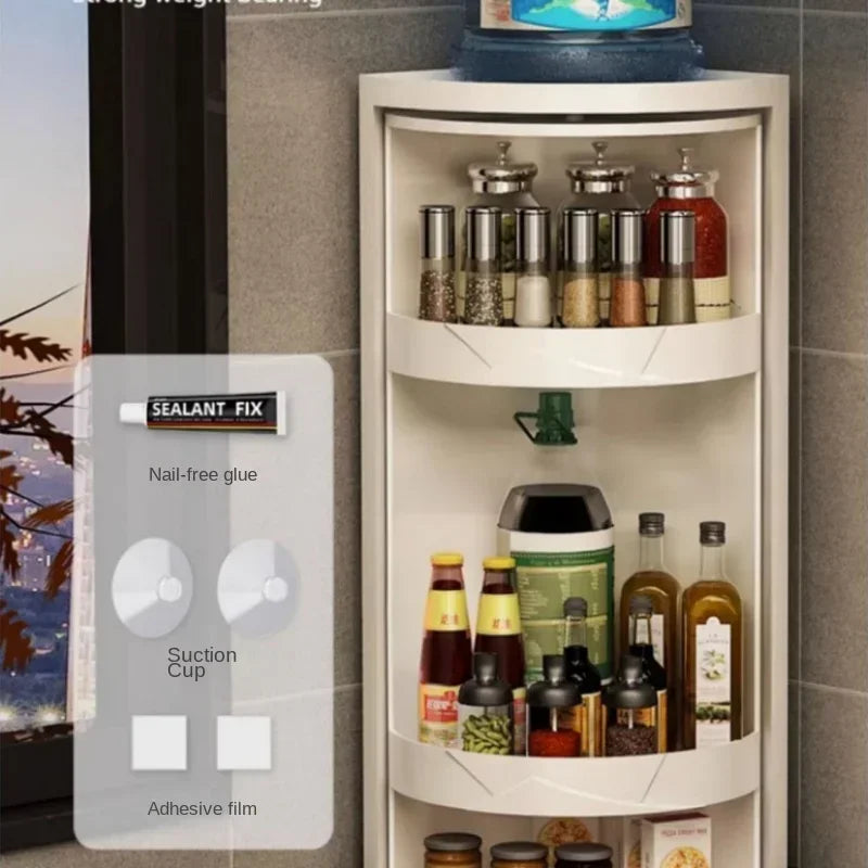 Kitchen Spice Rack: Table-Top Rotating Receptacle with Waterproof Corner Cabinet