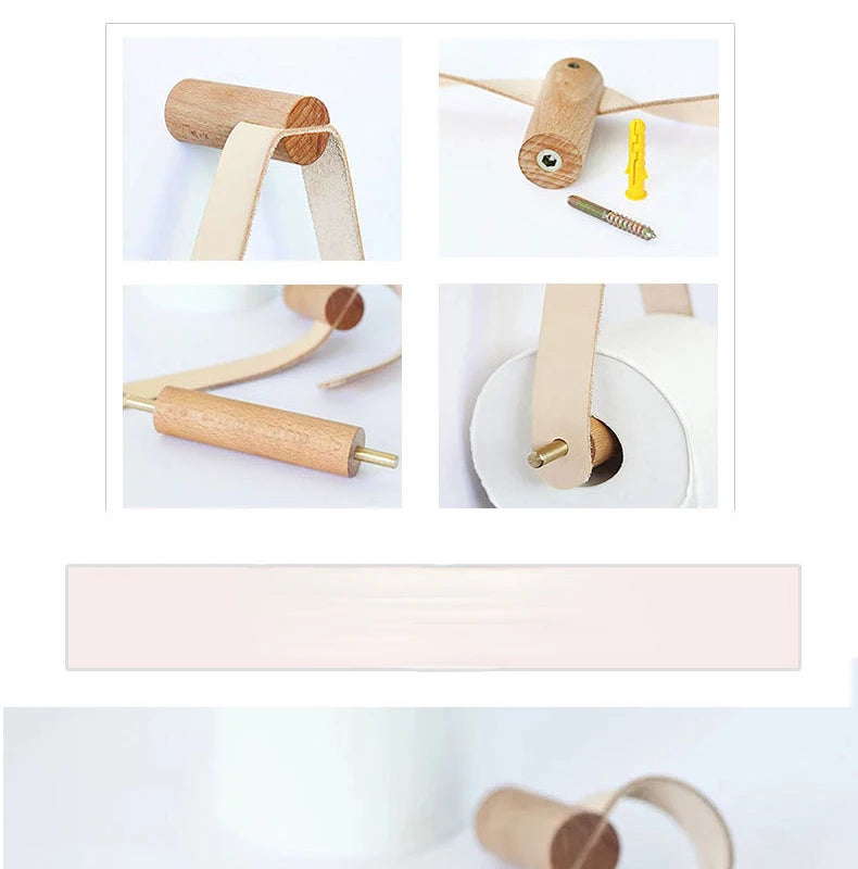 Kitchen Vertical Tissue Holder Tilet Wooden Wall Paper Roll Holder Creative Nordic Bathroom Perforated Tissue Holder