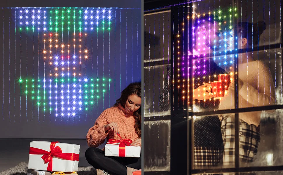 【Programmable Curtain Lighting】 The curtain lights outdoor indoor can create lights with any pattern and text through the LED APP. Perfect for write your lover's name and what you want to say to her during proposal, wedding and anniversary