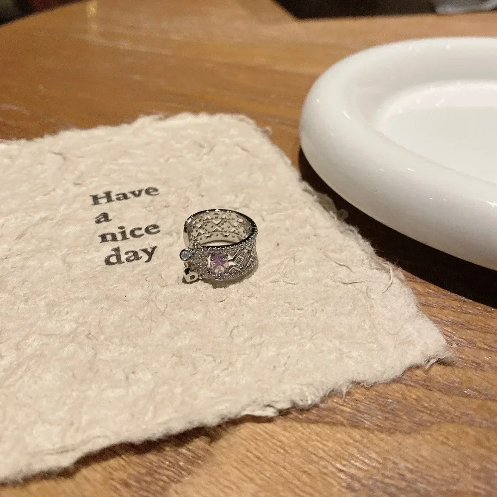 Light luxury exquisite silver 925 diamond amethyst rings for women unique fashion retro tassel purple tail ring wedding jewelry