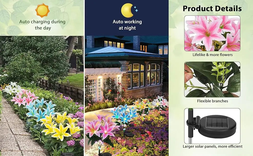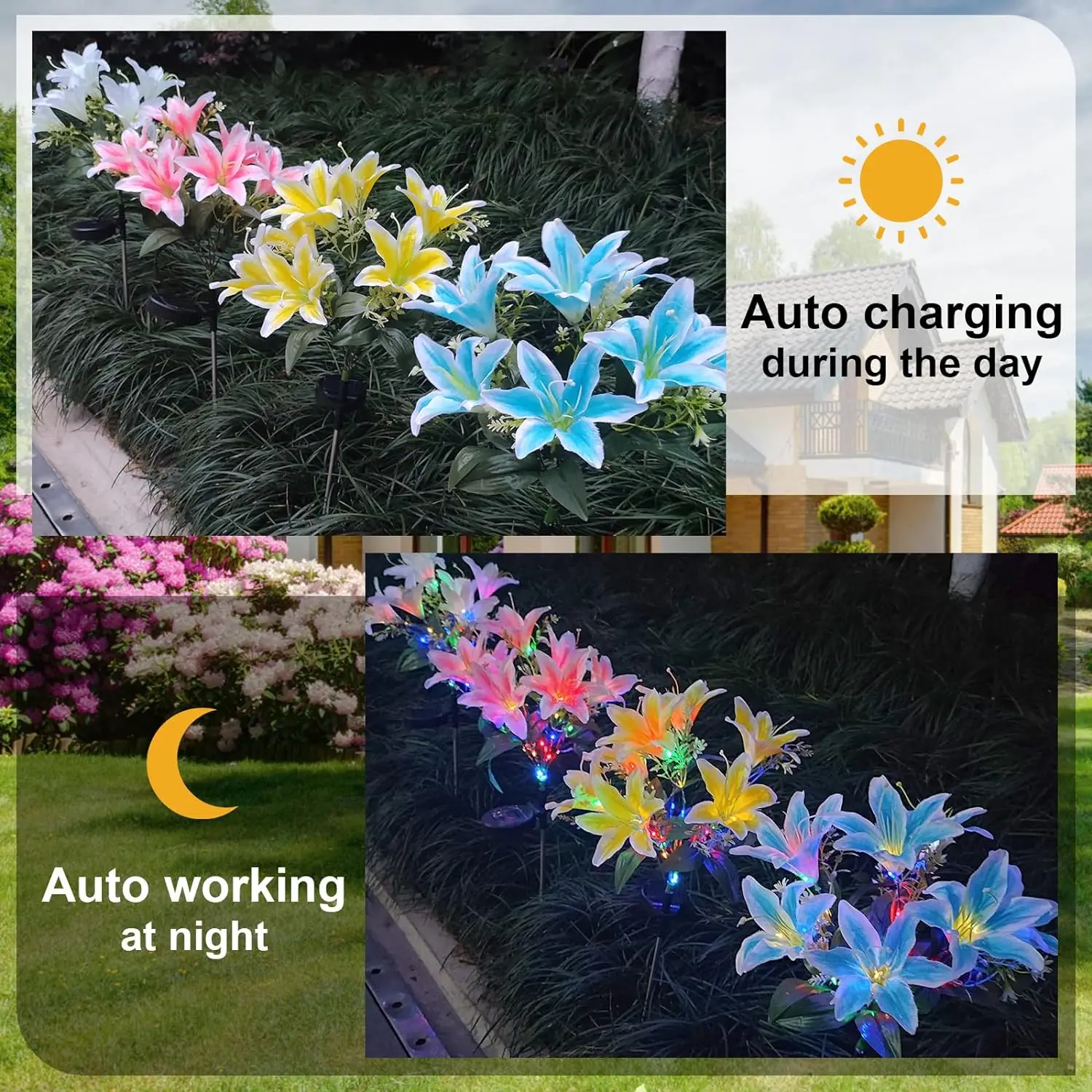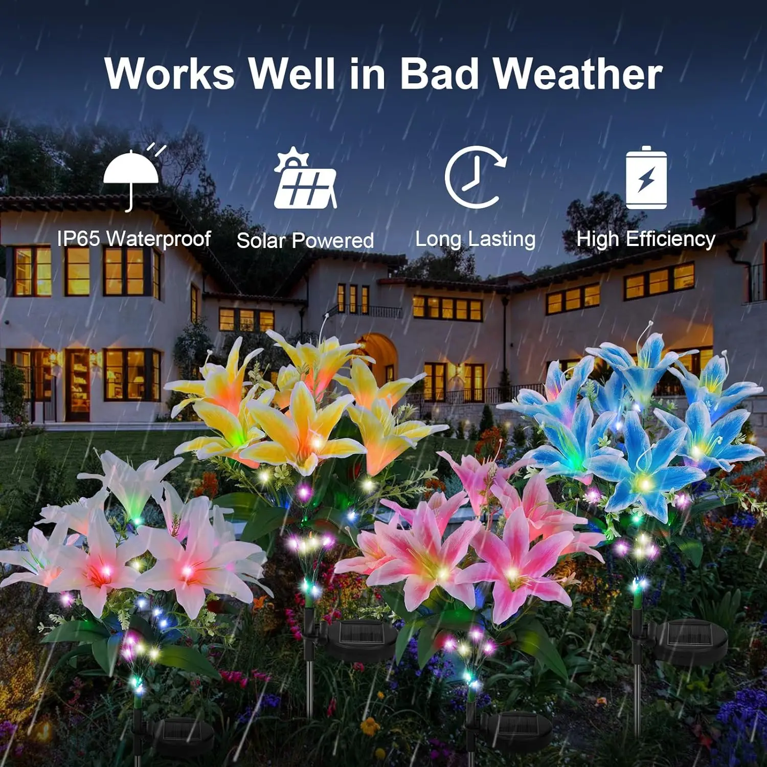 Lily Flower Solar Outdoor Light Ip65 Waterproof Solar Powered for Garden Pathway Landscape Lights Courtyard Yard Decoration