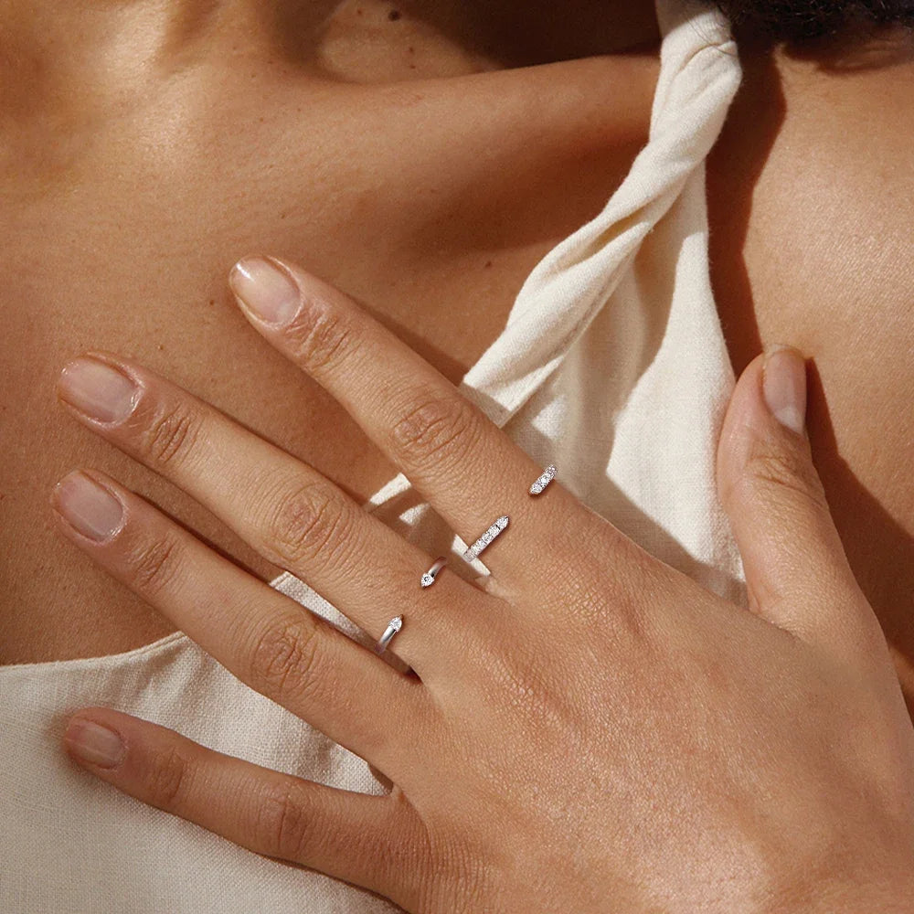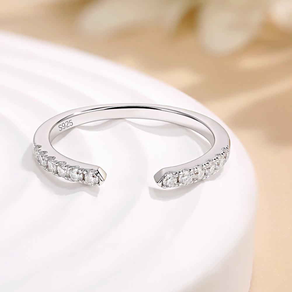LinkerLove Half Eternity Moissanite Open Ring for Women Stackable Wedding Band S925 Sterling Silver Diamond Rings Jewelry Gifts