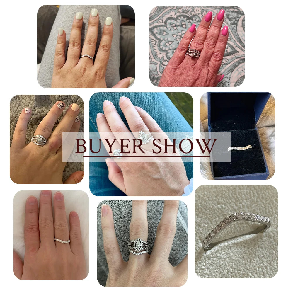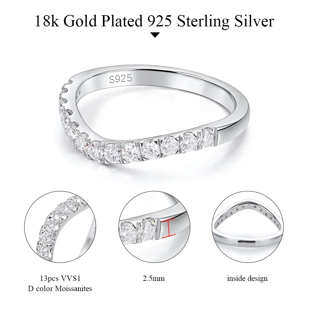 LinkerLove Moissanite Ring Diamond Curve Wedding Band 925 Sterling Silver Couple Engagement Ring Trend Fine Jewelry Gift for Her