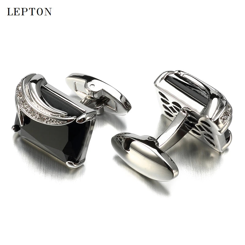 Low-key Luxury Blue Glass Cufflinks for Mens Lepton Brand High Quality Square Crystal Cufflinks Shirt Cuff Links Relojes Gemelos