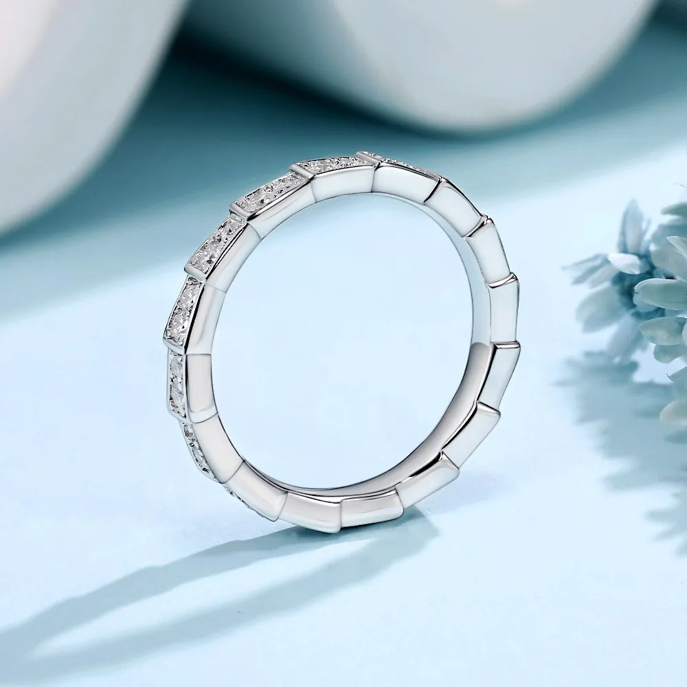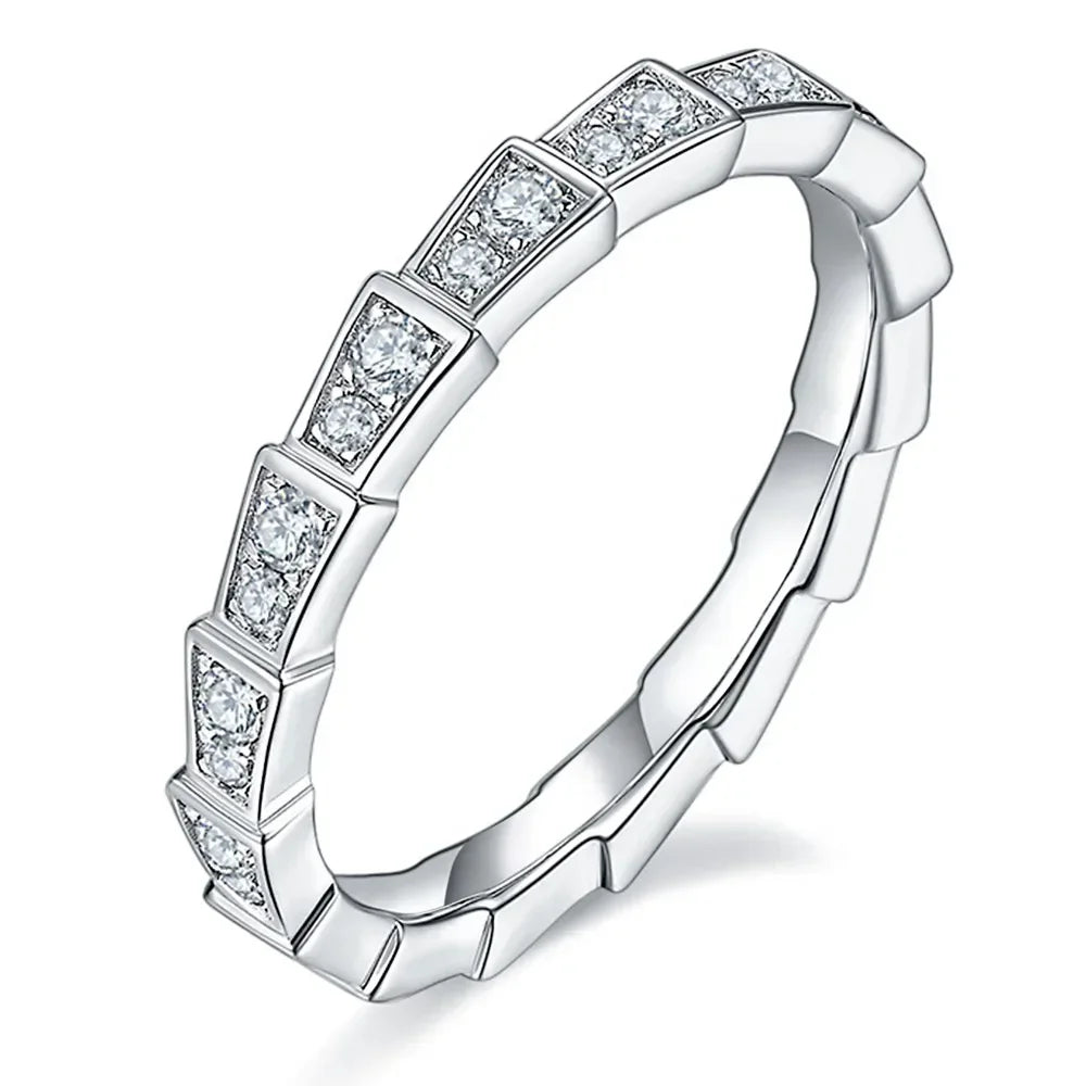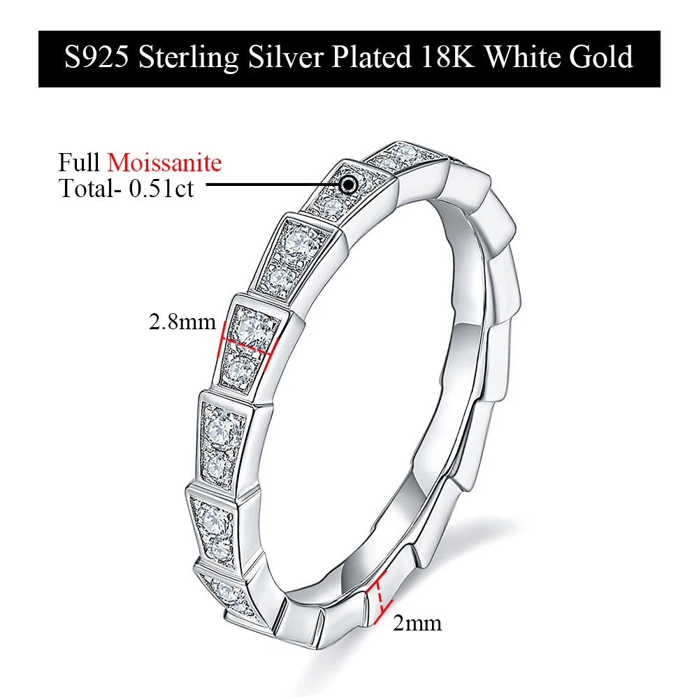 M-JAJA Eternity Moissanite Snake Ring Diamond Wedding Band for Women 18K Gold Plated 925 Sterling Silver Party Fine Jewelry Gift