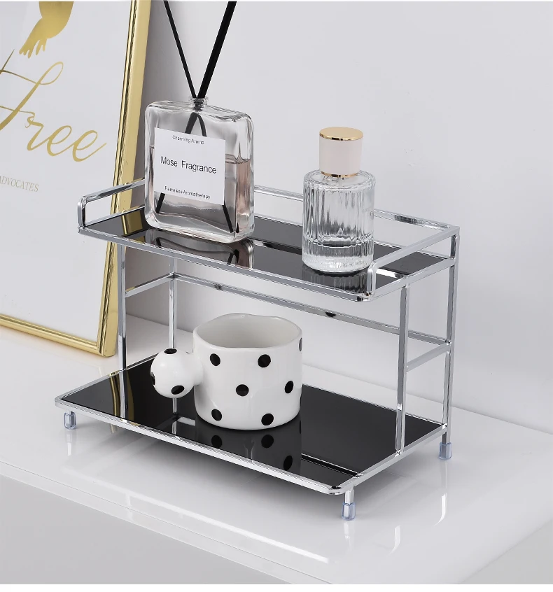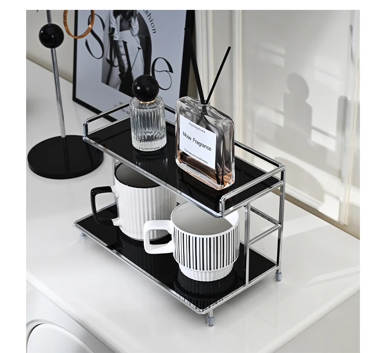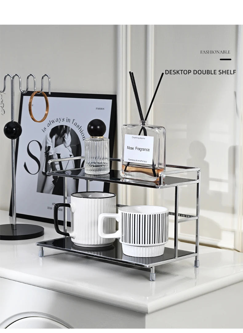 Metal Desktop Layered Storage Rack, Double-Layer Desk Storage Rack, Water Cup and Coffee Cup Storage Rack, Bathroom Cosmetics Storage Rack for Living Room, Entrance Hall, Kitchen and Bathroom