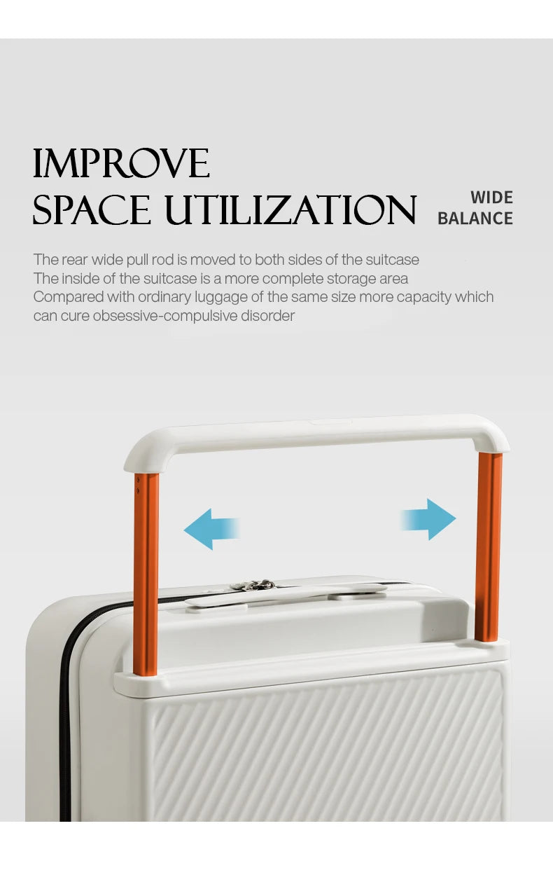 Designed for modern travelers, this unisex rolling luggage combines lightweight strength, smooth spinner wheels, and advanced security, making it ideal for business trips, vacations, and frequent flyers. The innovative wide-handle design improves balance and control, while the premium materials protect your belongings trip after trip.