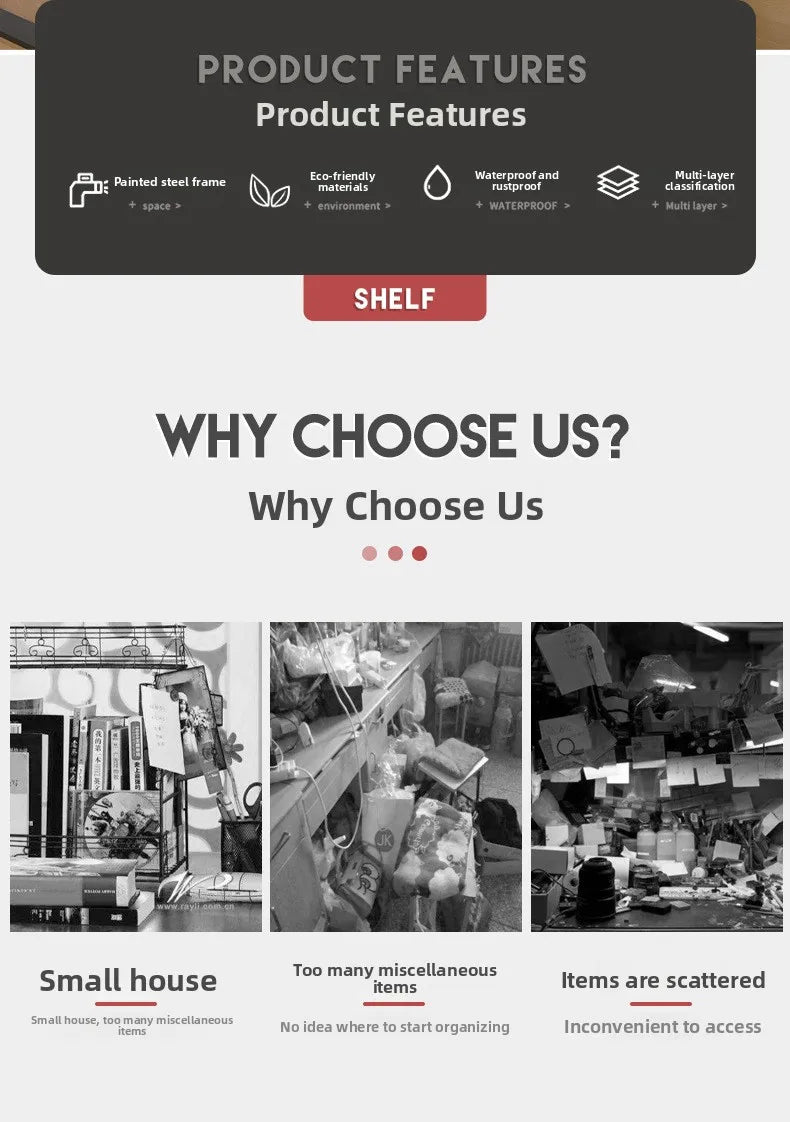 This multi-layered iron rack is a versatile storage solution for both commercial and domestic use, perfect for organizing kitchen essentials or displaying small items.