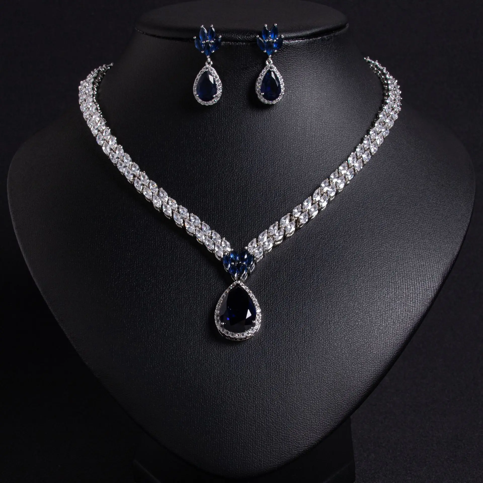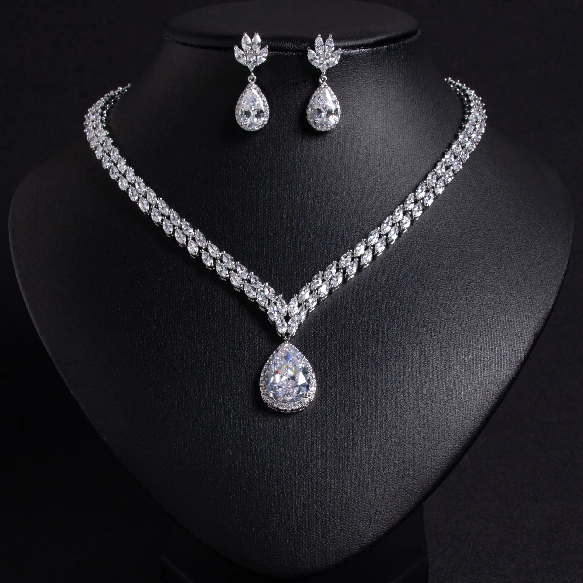 Key Word: Luxury Art Beauty Teardrop Necklace Earrings Ladies Jewellery Zirconia Set Dubai Accessories