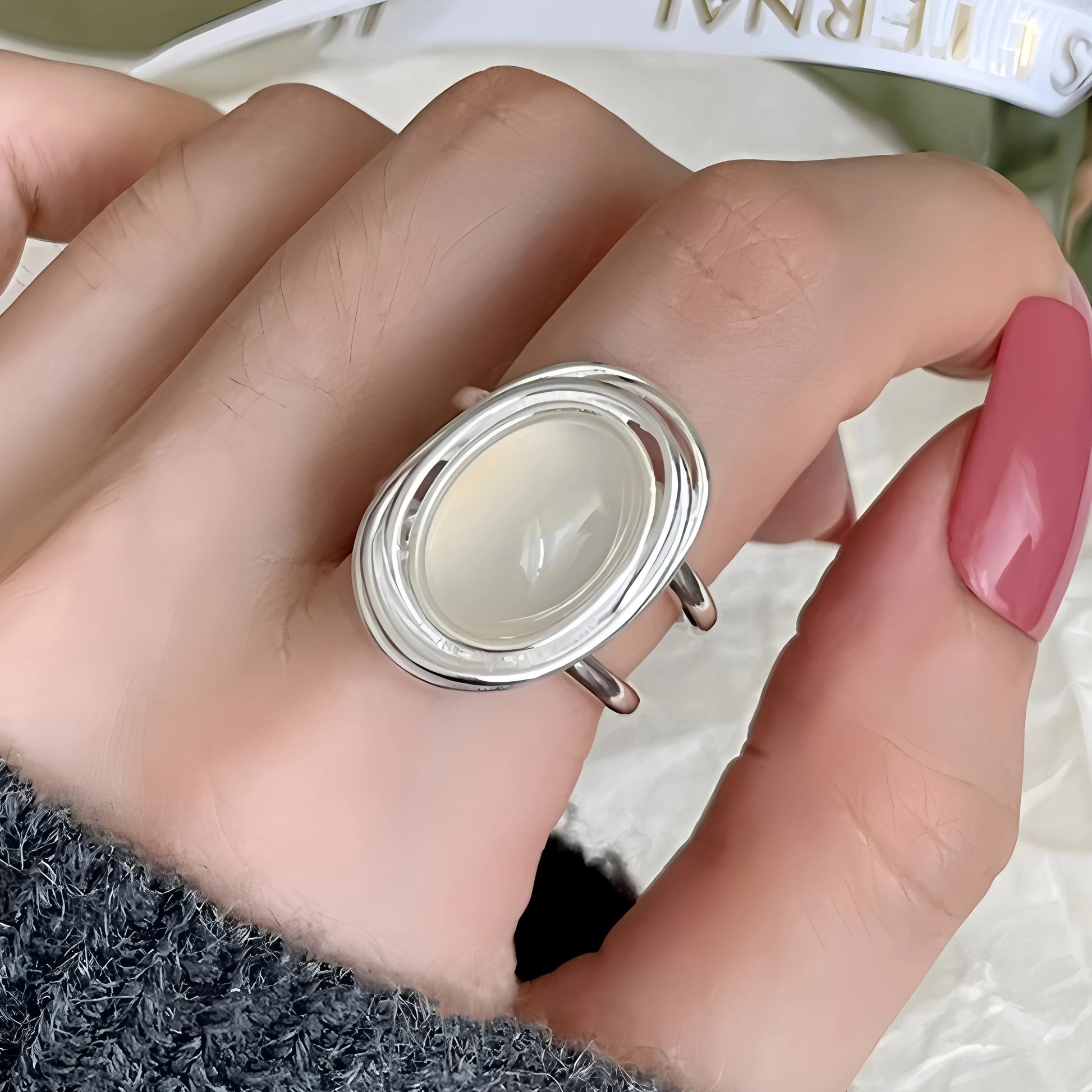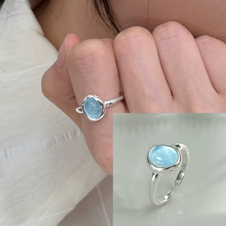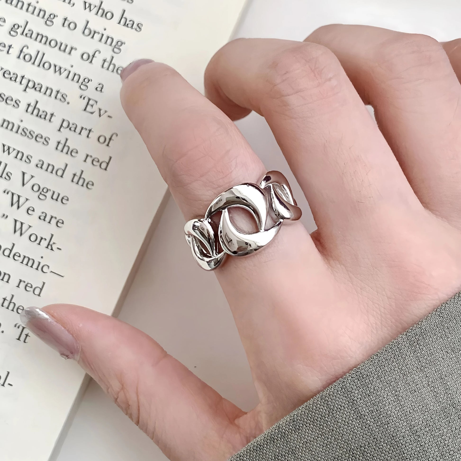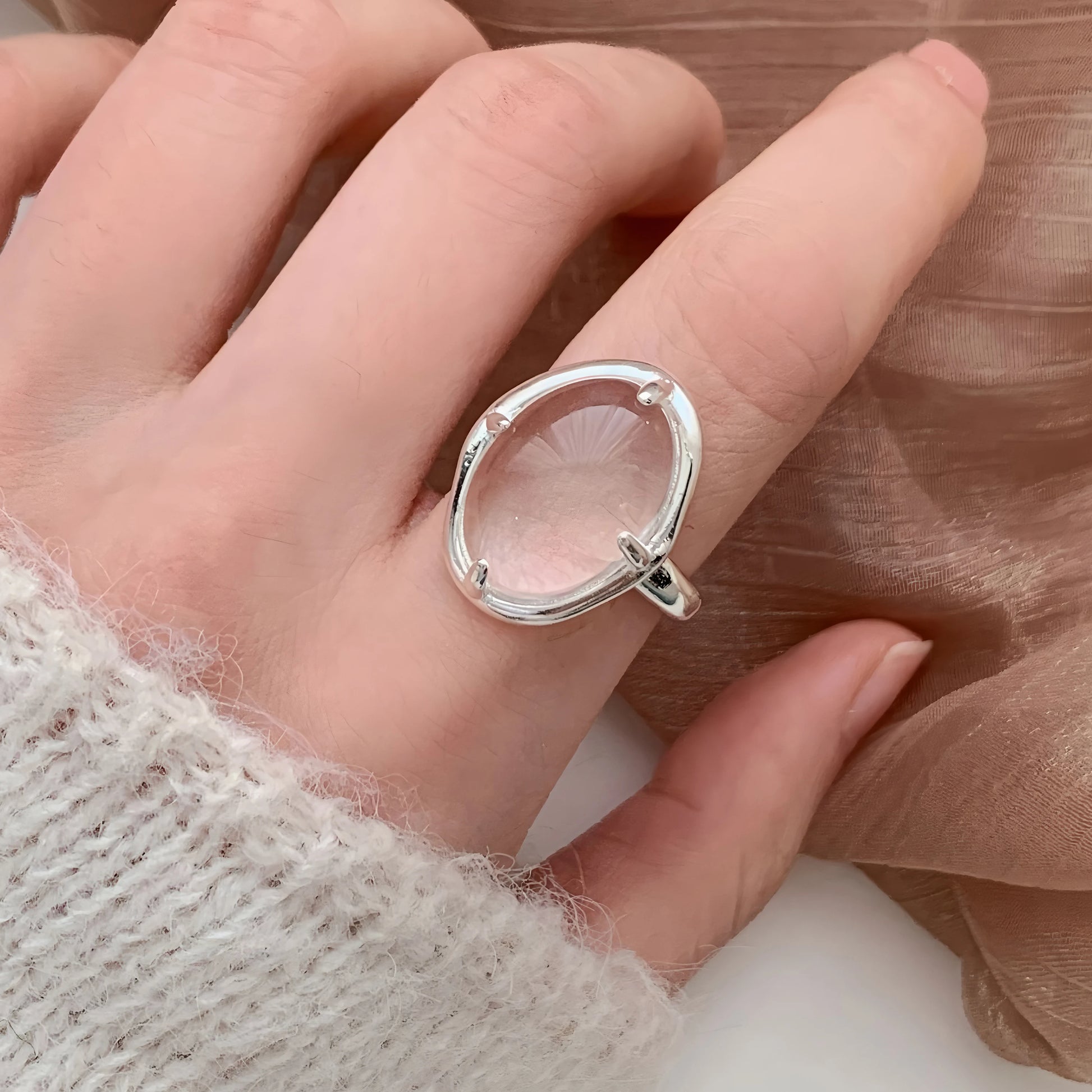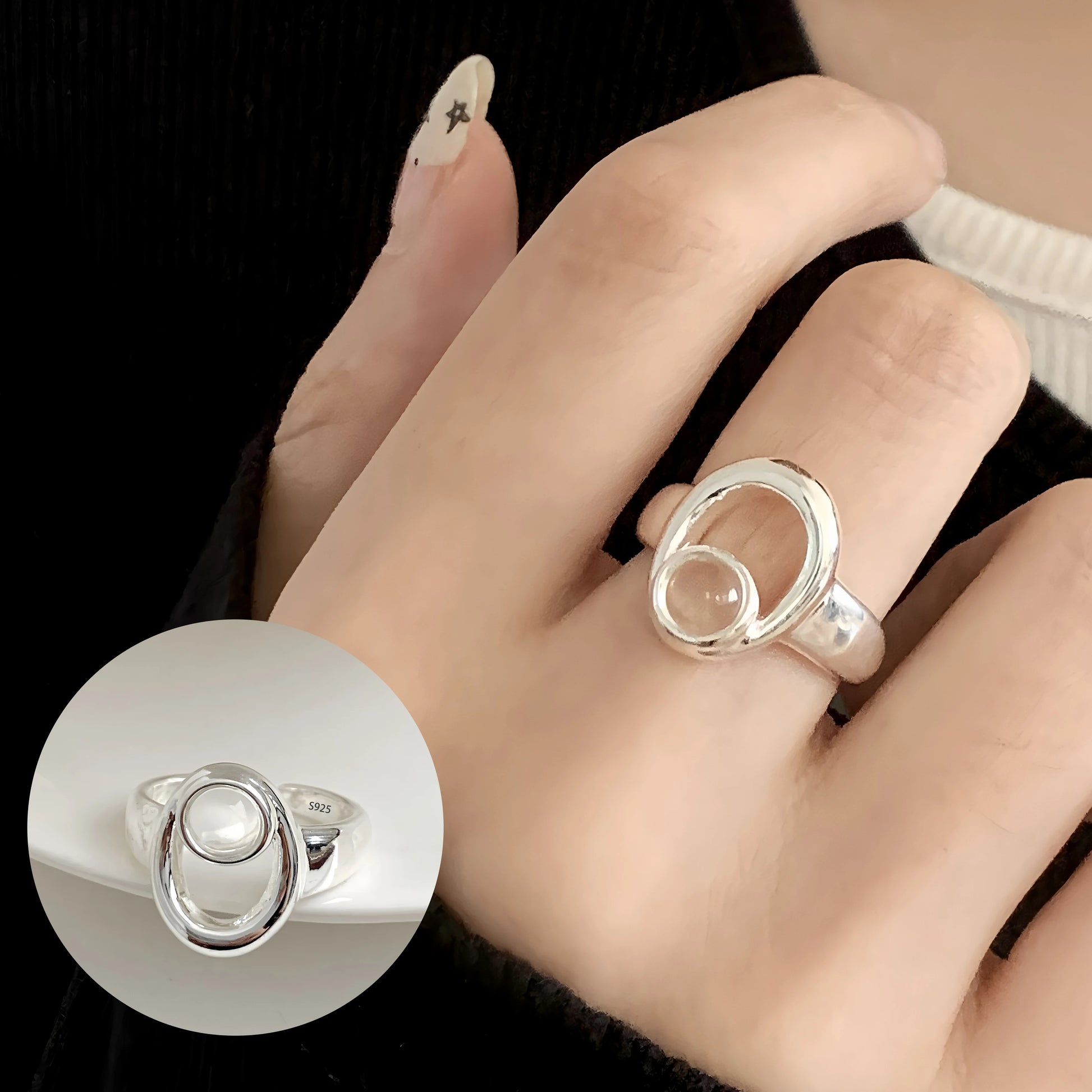 PANJBJ 925 Sterling Silver Geometry Crystal Ring For Women Ellipse Exaggerated Punk Water Drop Open Jewelry Gift Dropshipping