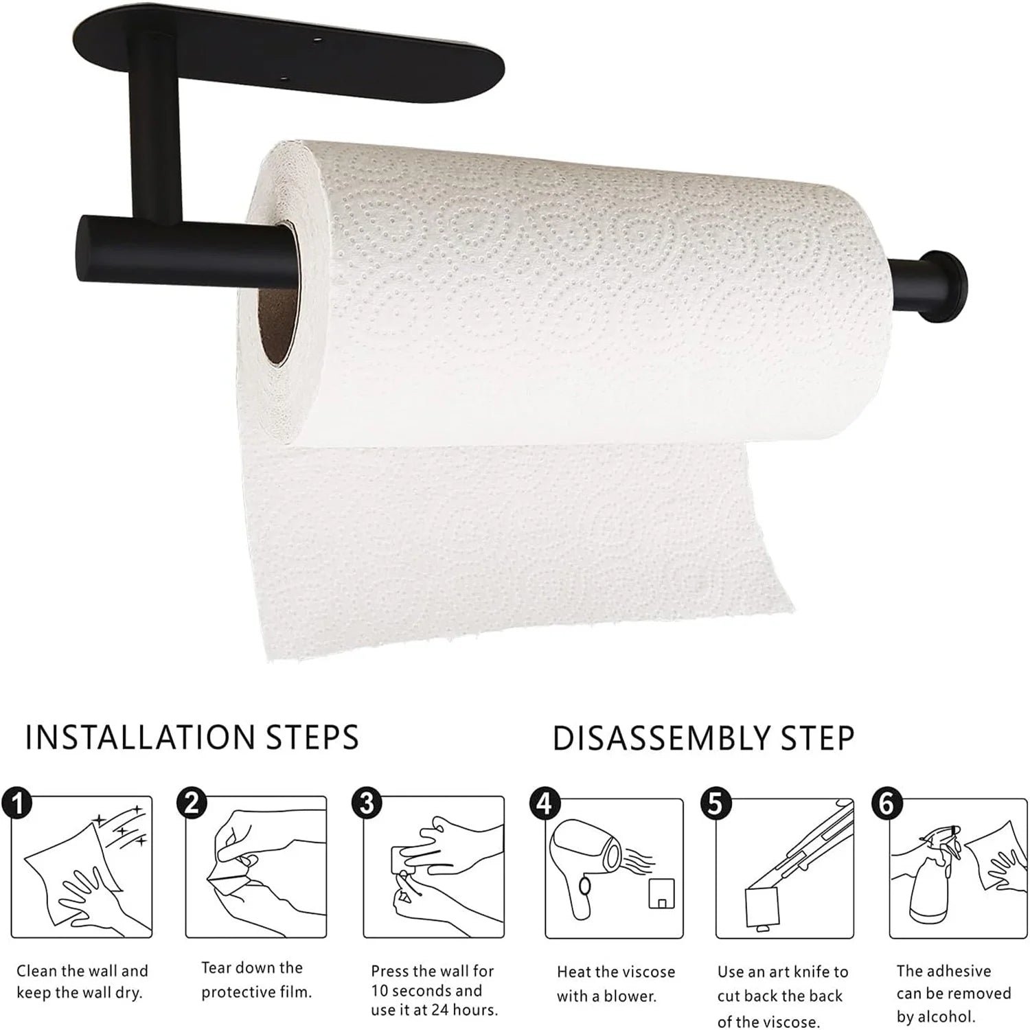 Paper Towel Holders for Kitchen Kitchen Roll Holder Paper Towels Self-Adhesive Under Cabinet Paper Towel Rack Stainless Steel