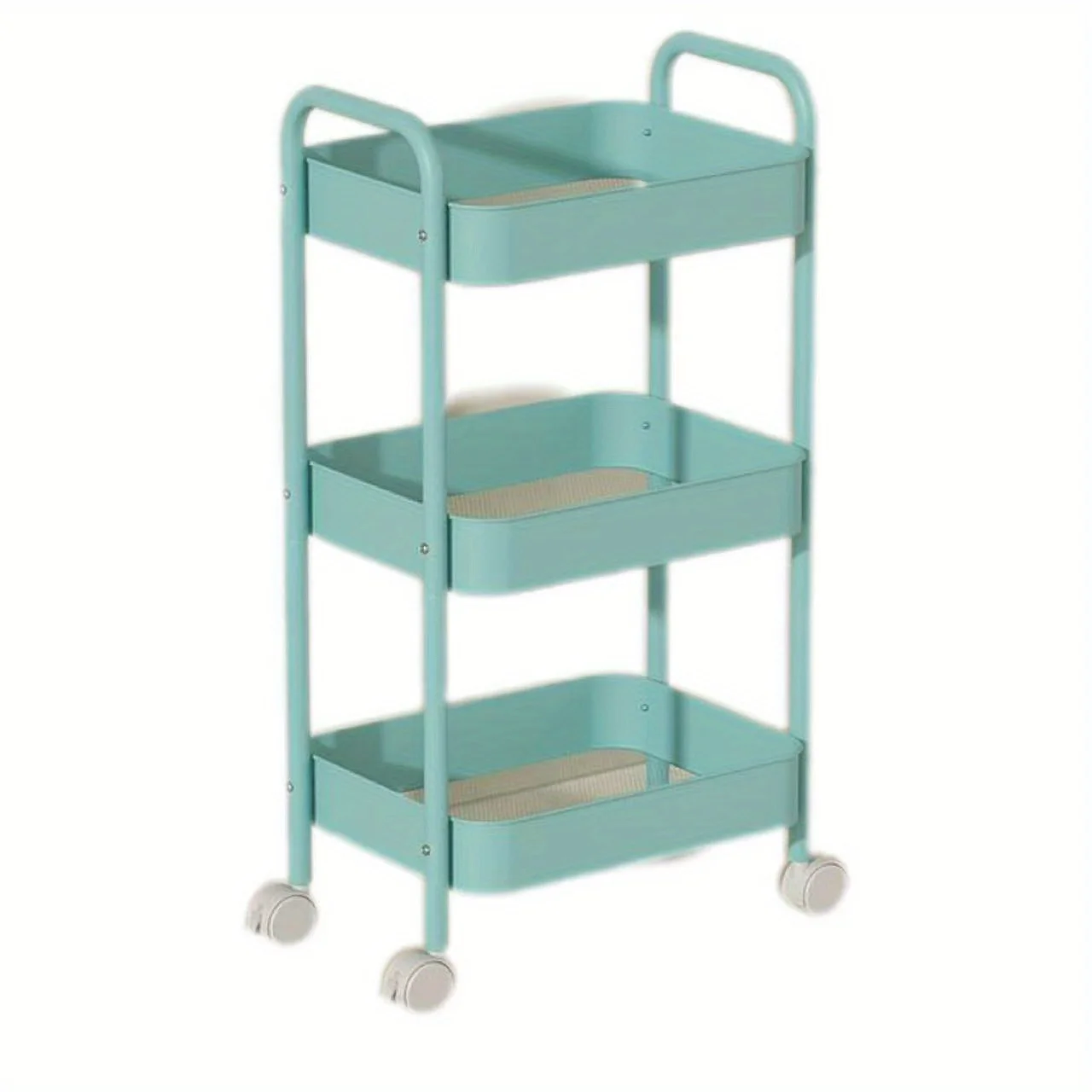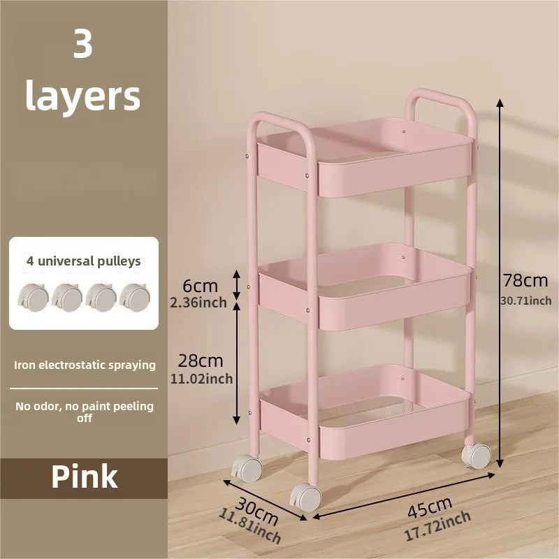 Pink 3-Tier Kitchen Cart with Wheels, Multifunctional Mobile Storage Snack Rack for Bedroom Living Room