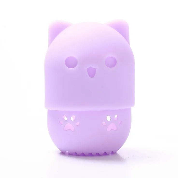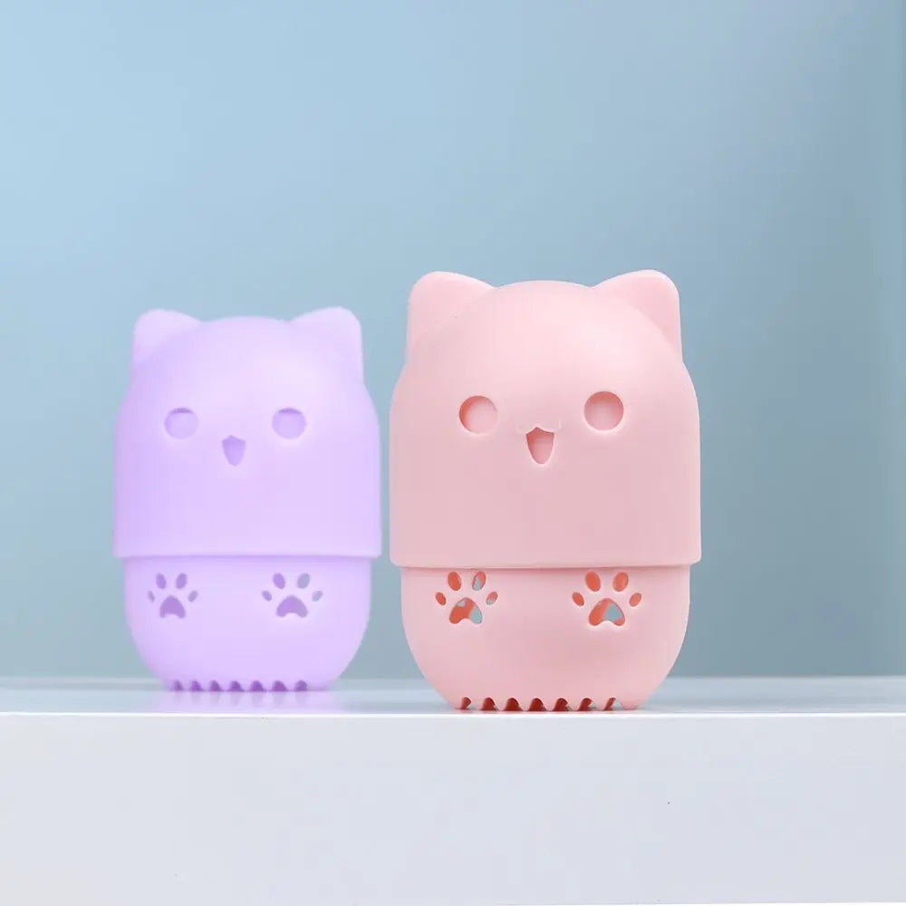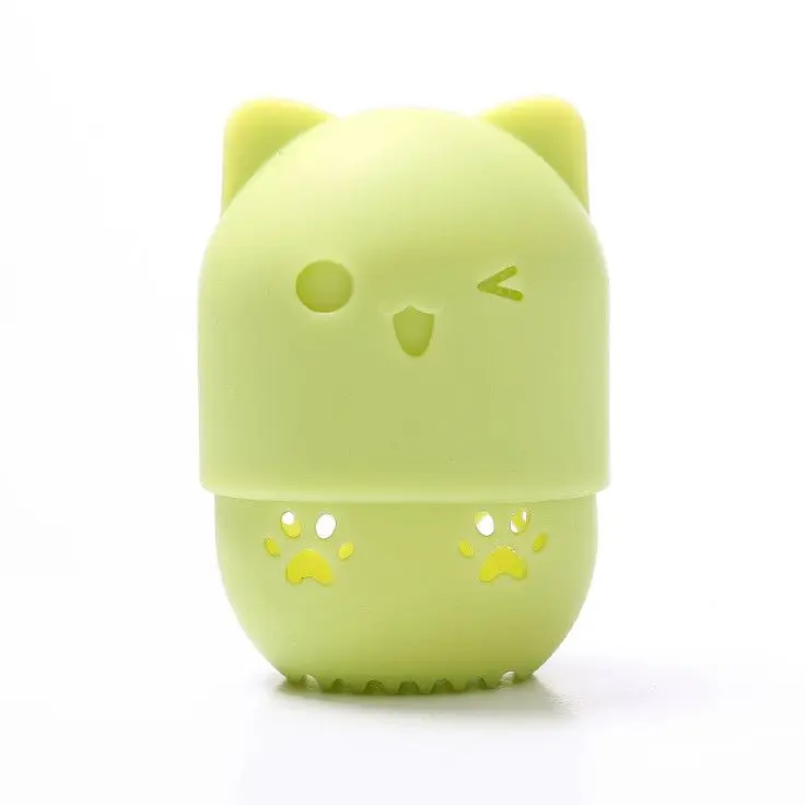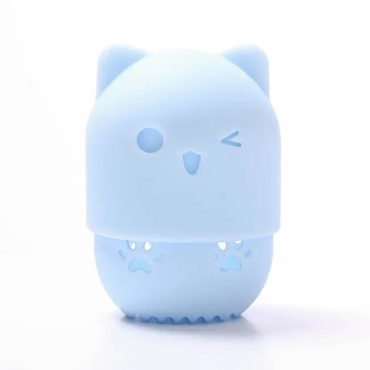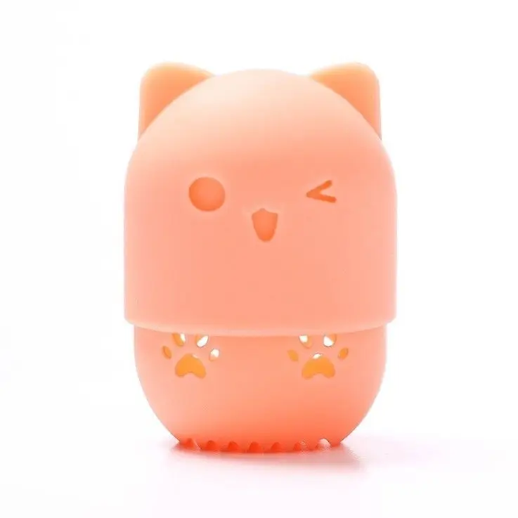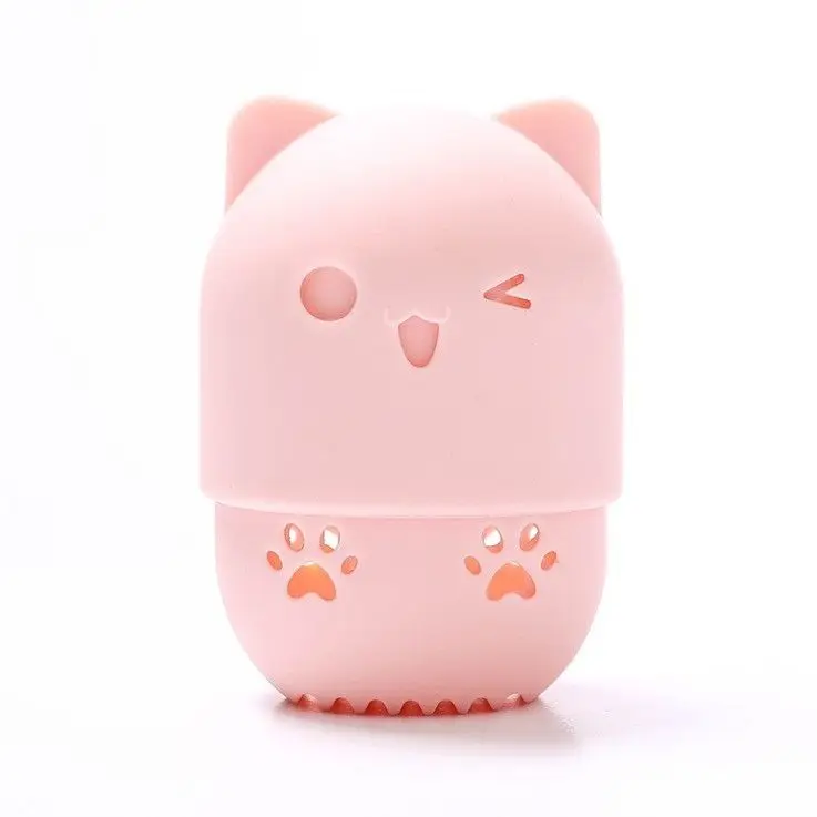 Pink Cute Cat Soft Silicone Cosmetic Sponge Box Holder with Beauty Eggs Portable Powder Puffs Holder Sponge Make Up Drying Cases