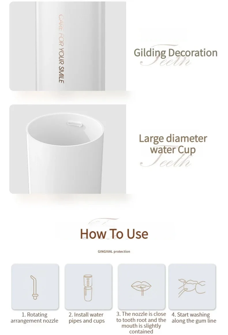Portable Electric Oral Irrigator Water Flosser 3 Modes Waterproof Dental Cleaner for Teeth Personalized Oral Care