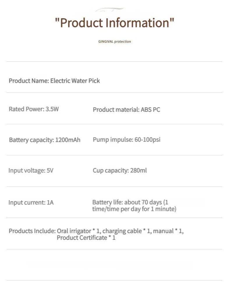 Type: Electric Oral Irrigator