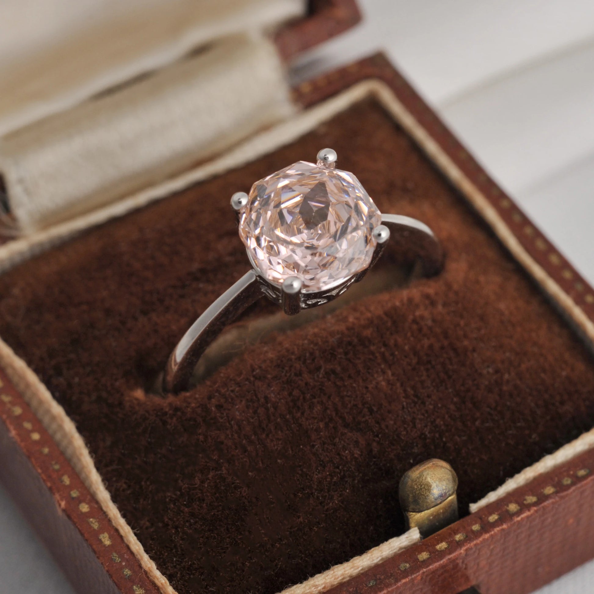 Potiy 2ct Octagon Rose Cut Morganite Pink Cubic Zirconia Solitaire Ring, 925 Sterling Silver Jewelry Gift for Women with