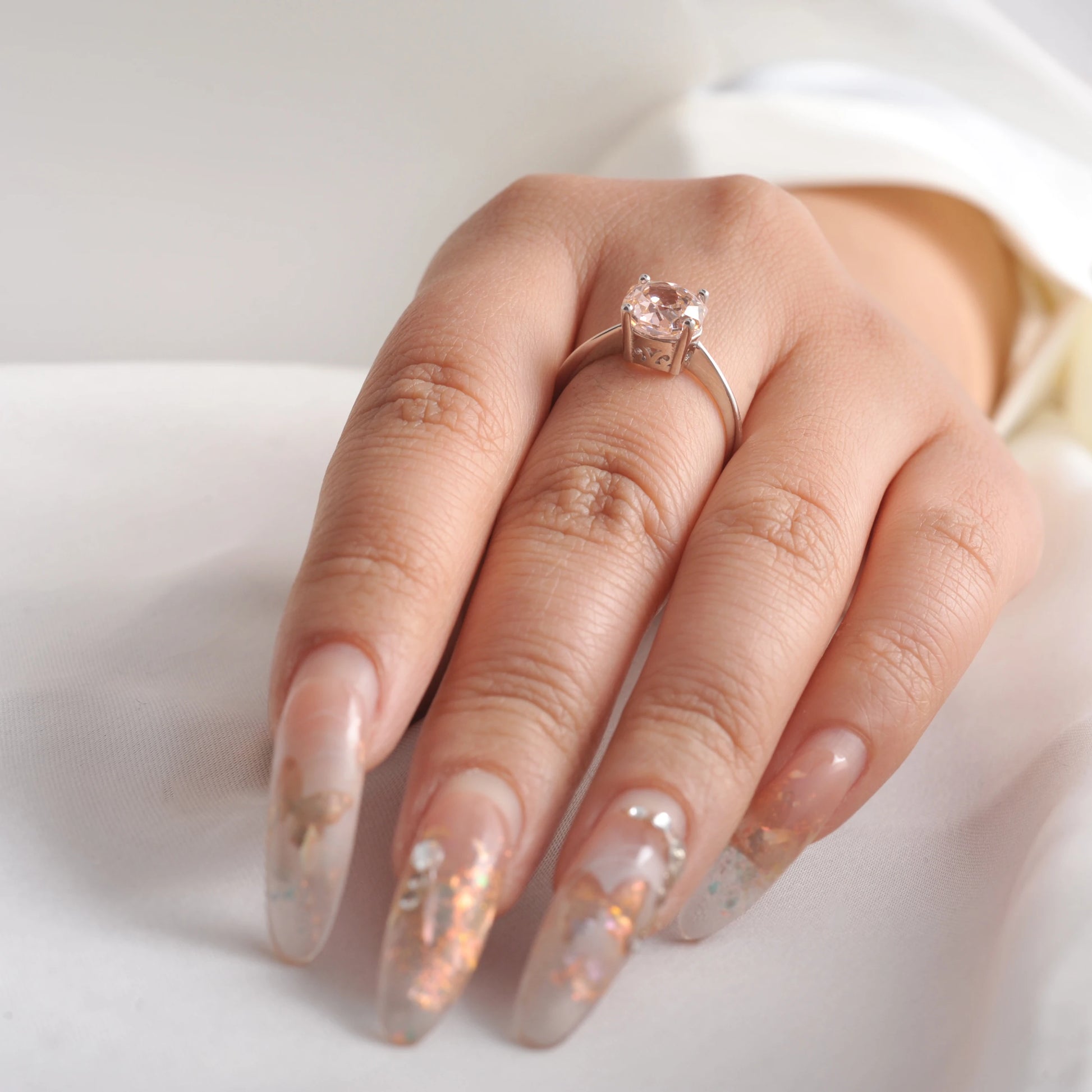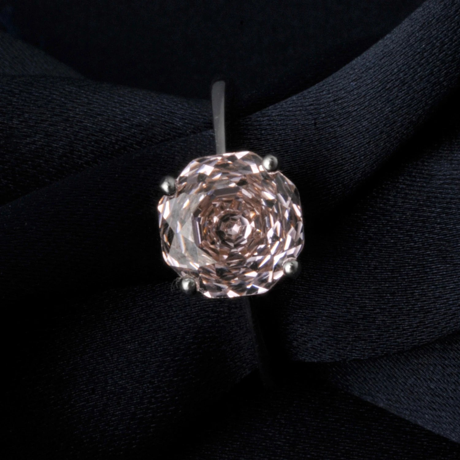 Featuring an octagon rose cut morganite, the ring exudes elegance and sophistication.