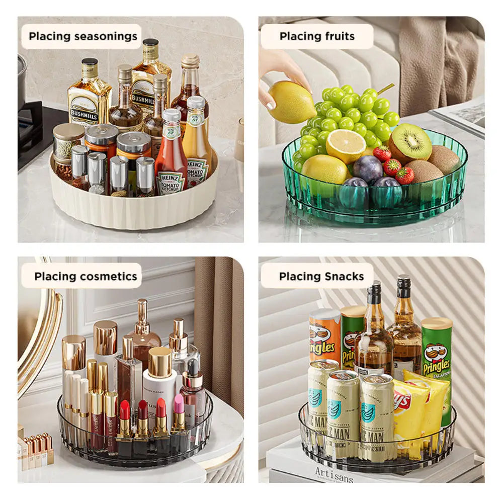Easy sliding - Rotates 360°, the bottom is non-slip and stable, the rotation does not slip, allowing you to easily place flavoring bottles, fruits and vegetables, or cosmetics and skin care products at any Angle.