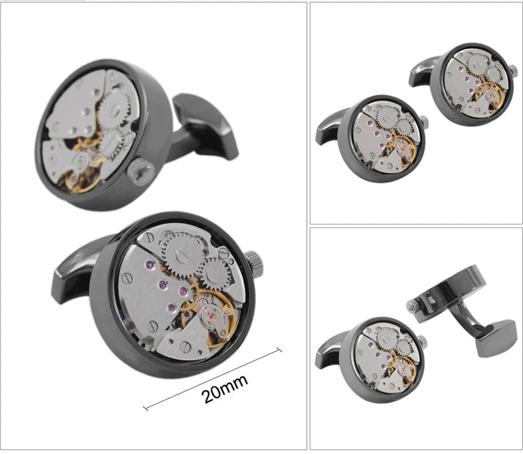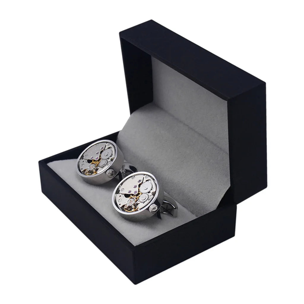 SAVOYSHI Mechanical Watch Movement Mens Shirt Cufflinks Functional Self Rotating Watch Mechanism Gears Cuff Links Gift