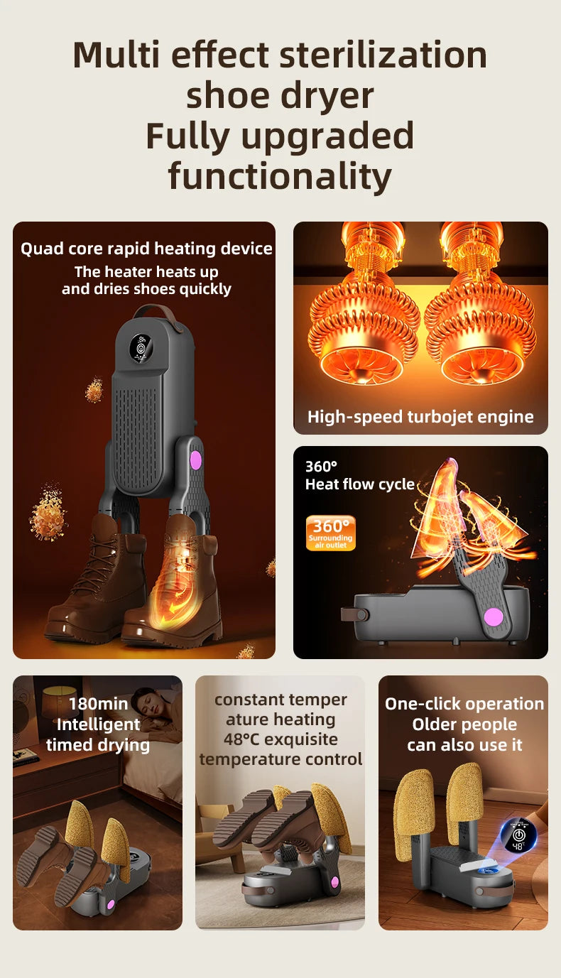 Shoe Dryer Boot Warmer UV Sterilizer Fast Drying Deodorizer Intelligent Timer for Boots Sneakers Home Use Portable Electric