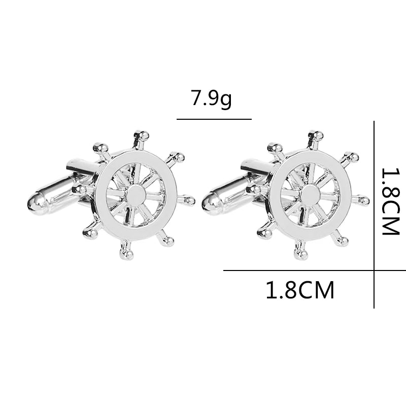 Silver Color Rudder Cufflinks High Quality Luxury Men Cuff Button Personality captain French Men's Shirt CuffLinks skipper