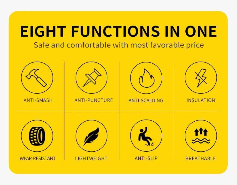 Puncture-Resistant Sole: Durable, anti-puncture soles protect against sharp debris and hazards on hard surfaces, giving you confidence wherever you work.