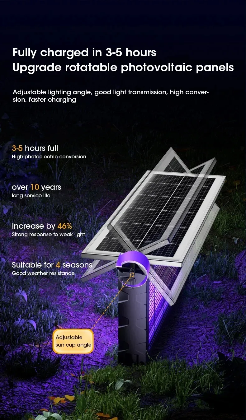 Solar Outdoor Mosquito Killer Lamp UV Light Trap Electric Shock Waterproof Auto On Off Light Sensor Eco Friendly Garden Camp