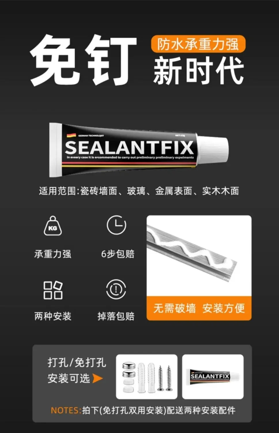 Easy Installation: Comes with punch accessories for quick and secure mounting on tile, marble, metal, glass, or waterproof walls.