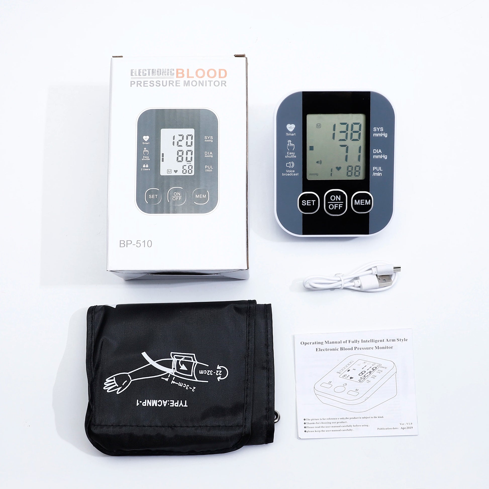 Tensiometer Heart Rate Pulse Meter BP Monitor Healthy Digital Arm Blood Pressure Meter Cuff Medical Automatic Pressure Tonometer