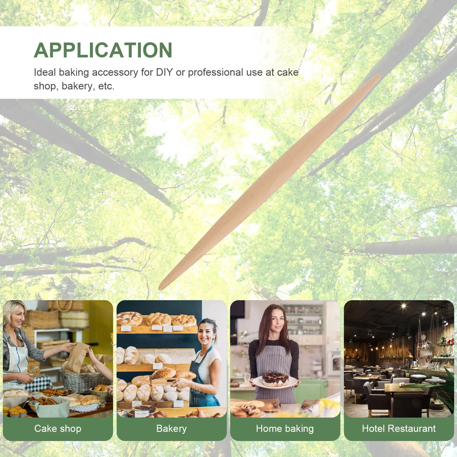 Wooden Rolling Pin 39Cm X 2.8Cm Solid Wood Dough Pastry Roller For Baking Fondant Cake Noodle Making Kitchen Utensil Tool