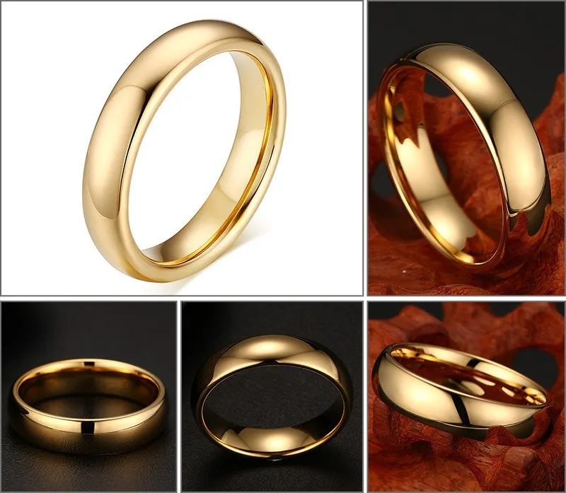 ZORCVENS Fashion 100% pure tungsten rings 4MM/6MM wide Gold-Color wedding rings for women and men jewelry